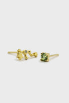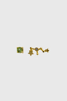 Gold birthstone zodiac earrings / Aug - Peridot light green