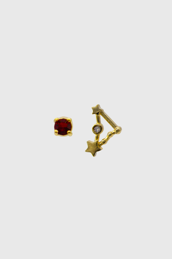 Gold birthstone zodiac earrings / Jan - Garnet wine red