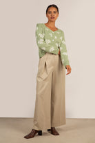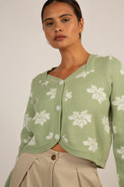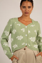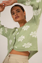 Green and white intarsia flower cardigan