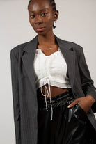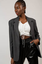 Grey pinstripe single breasted blazer