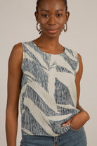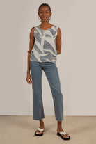 Ivory and black leaves print sleeveless top