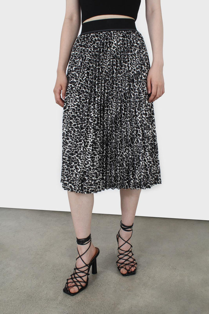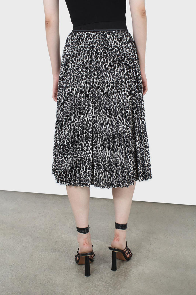 Ivory and black leopard velvet pleated skirt