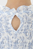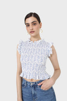 Ivory and blue floral print ruched tank