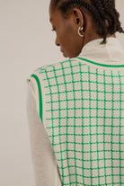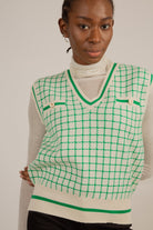 Ivory and green box check sweater vest