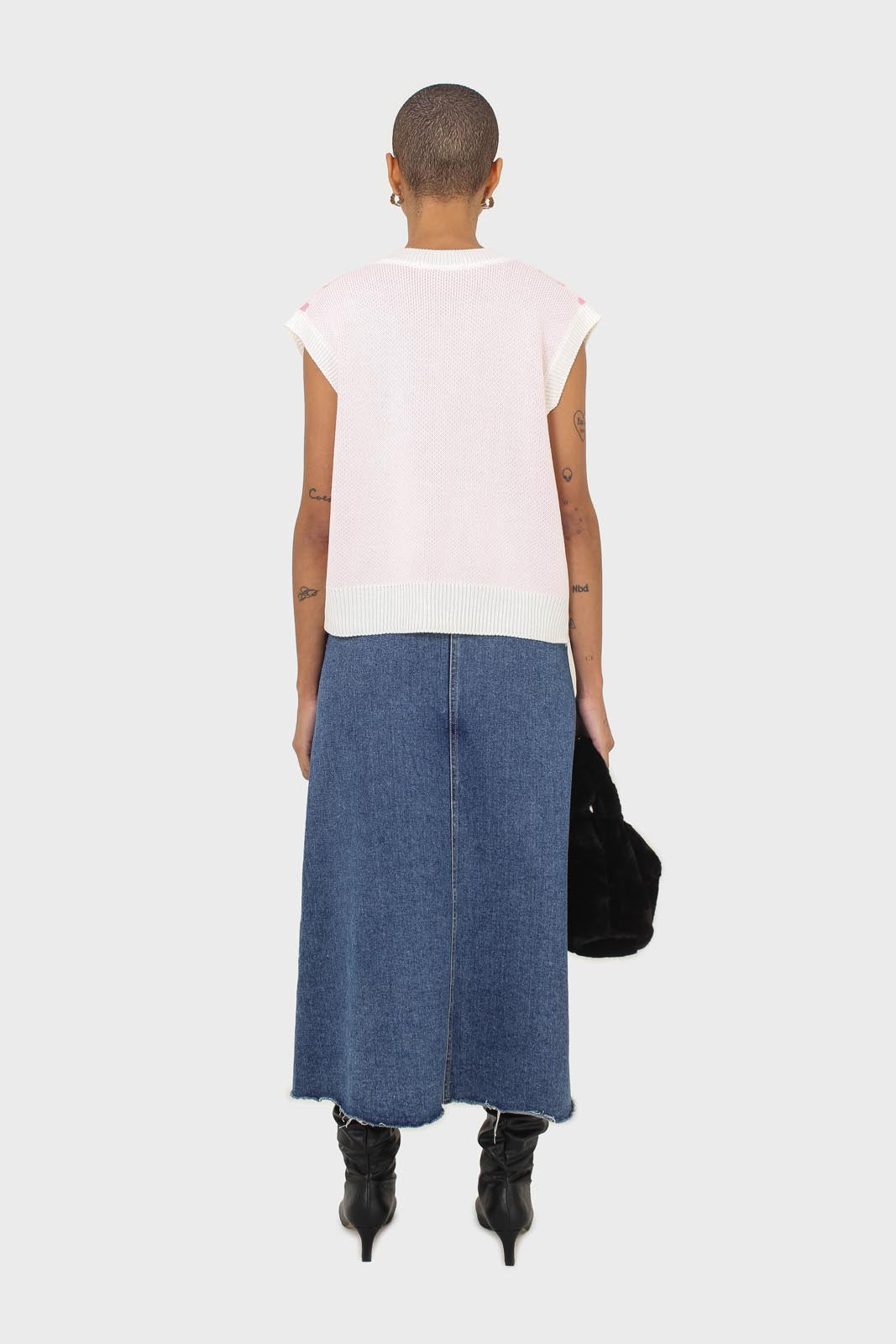 Ivory and pink argyle knit vest