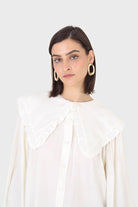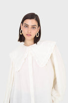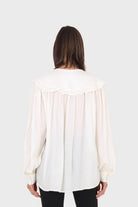 Ivory frill large collar balloon sleeve blouse