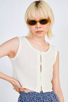 Ivory loose weave button front tank