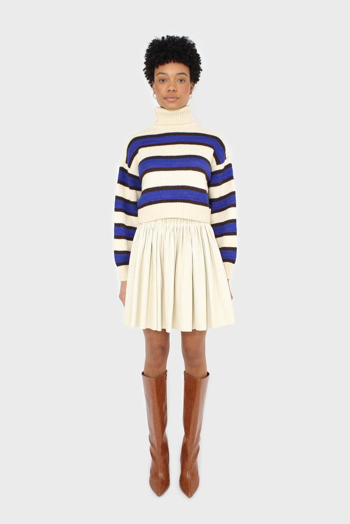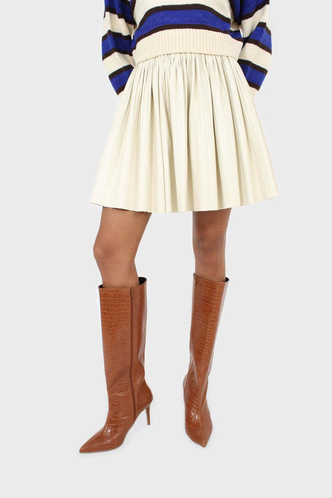 Ivory vegan leather micro pleat mini skirt