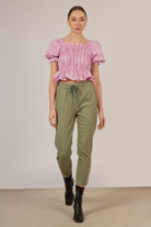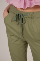 Light khaki loose fit drawstring trousers
