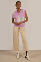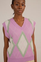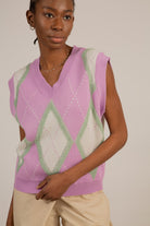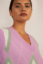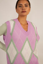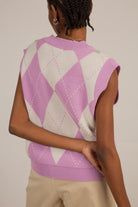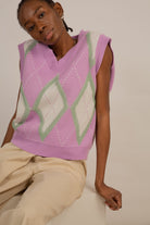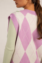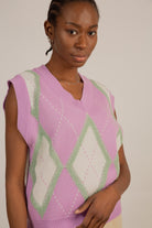 Lilac and grey textured argyle sweater vest