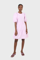 Lilac tiered puff sleeve mini dress
