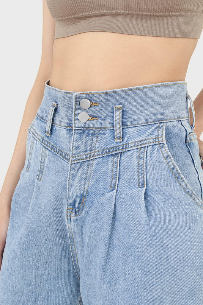 Mid wash pleat front jeans