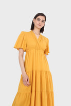 Mustard yellow v-neck tiered maxi dress