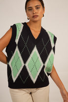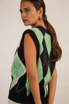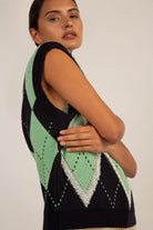 Navy and green textured argyle sweater vest
