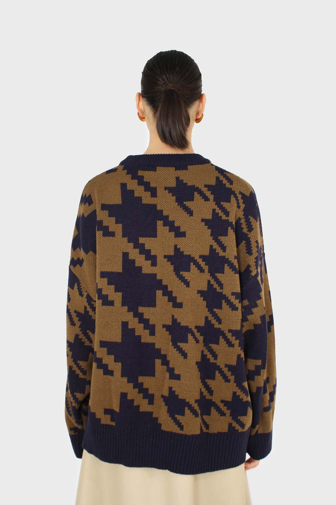 Navy and khaki houndstooth oversized jumper