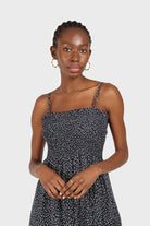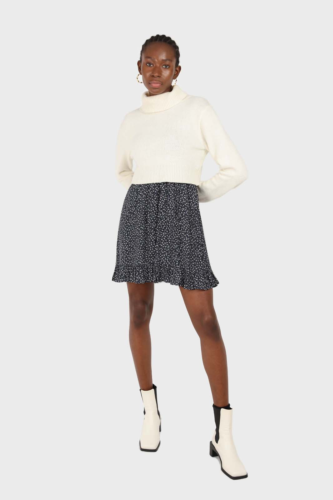 Navy and white floral ruched bodice mini dress