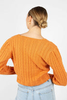Orange fitted cableknit cardigan