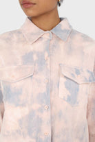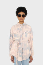 Pale pink and blue tie dye tie waist shirt jacket