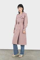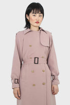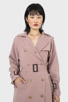 Pale pink double breasted trench coat