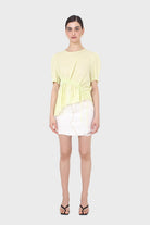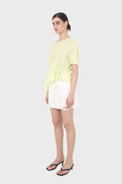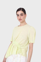 Pale yellow pull string linen top