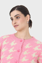 Pink and cream houndstooth fuzzy cardigan