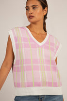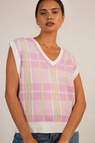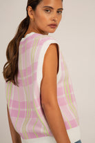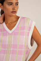 Pink and green checked vest