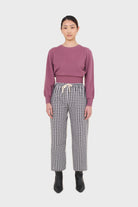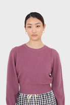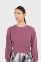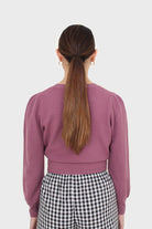 Purple balloon sleeve crop jumper