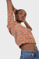 Red rainbow intarsia knit tee
