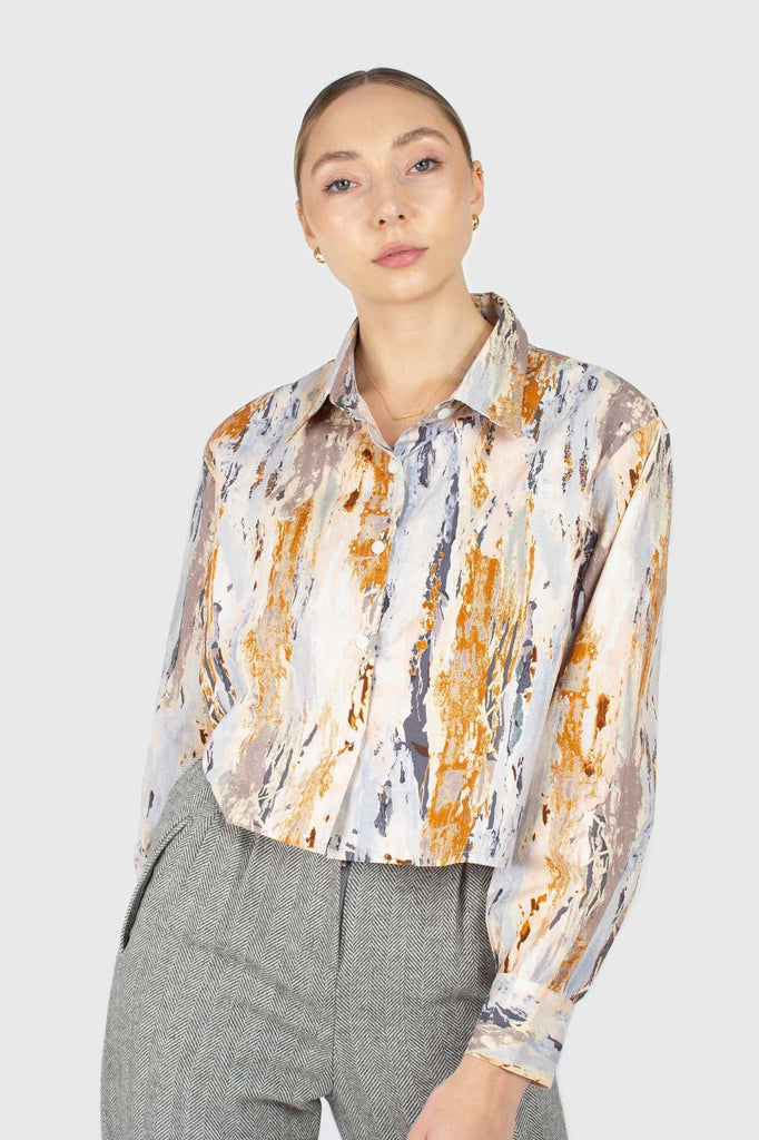 Rust marble print cropped cotton shirt