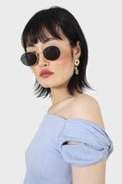 Sky blue off shoulder cropped tee