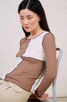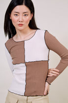 Brown and white contrast blocks top
