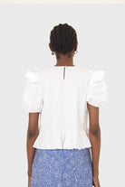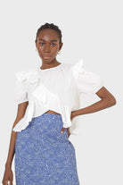 White asymmetric frill short sleeved top
