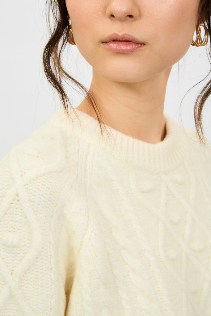 White diamond sleeve cable knit jumper