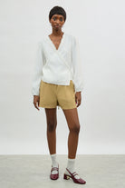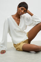 White frill trim wrap shirt blouse