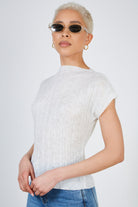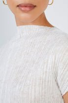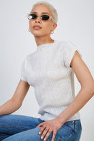 White pleat ribbed short sleeved top