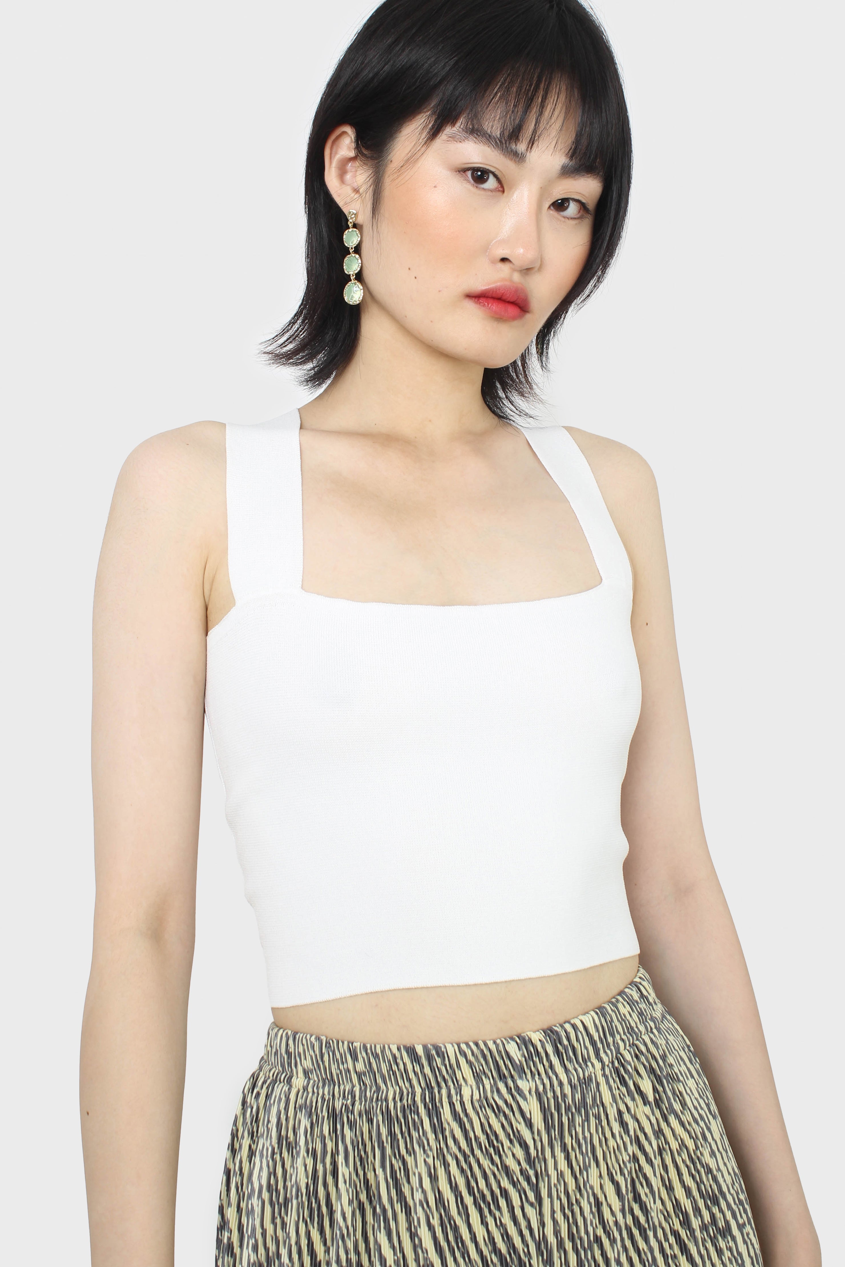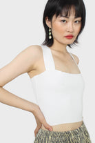 White thick strap cross back knit tank